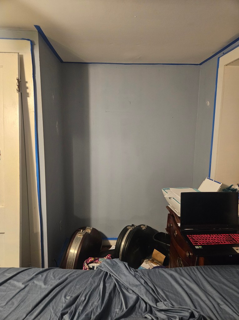 Right now, this area is used to house my instruments and other random clutter. I’d like to change that into a functional place for me to work and practice my French Horn. I believe that this would be a great place to breathe new life into things.